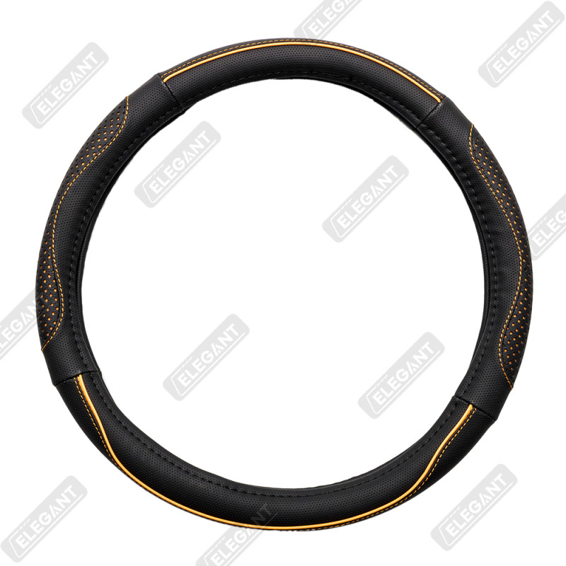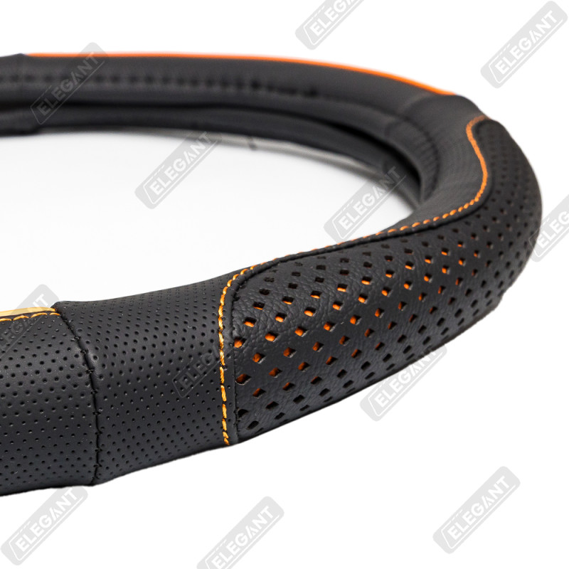 Чохол на кермо шкіра "M" (37-38см) чорний Elegant 115141 перфорація/помаранчева нитка