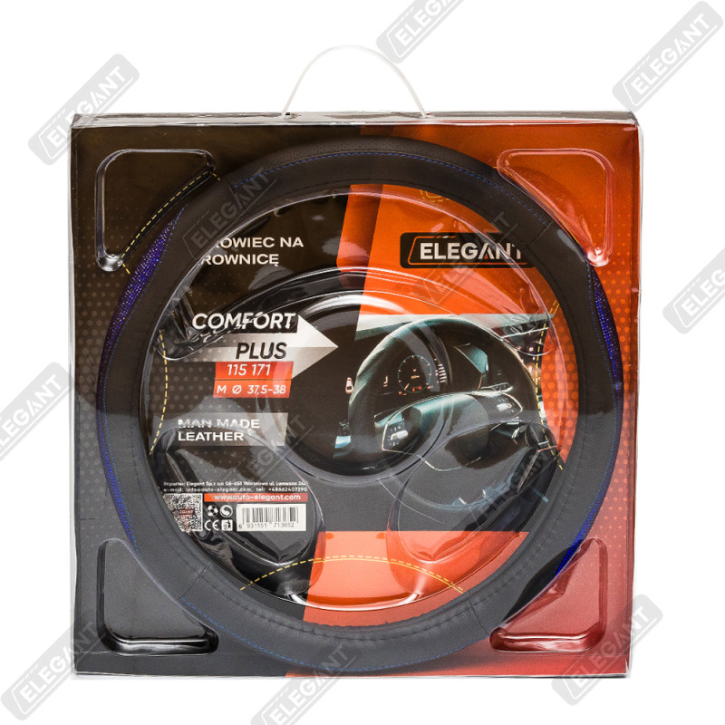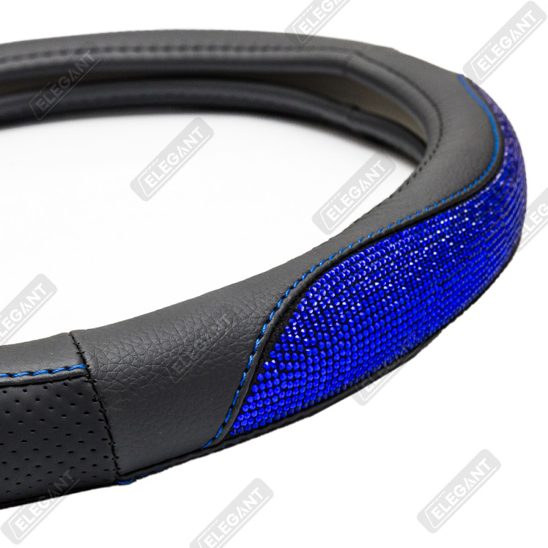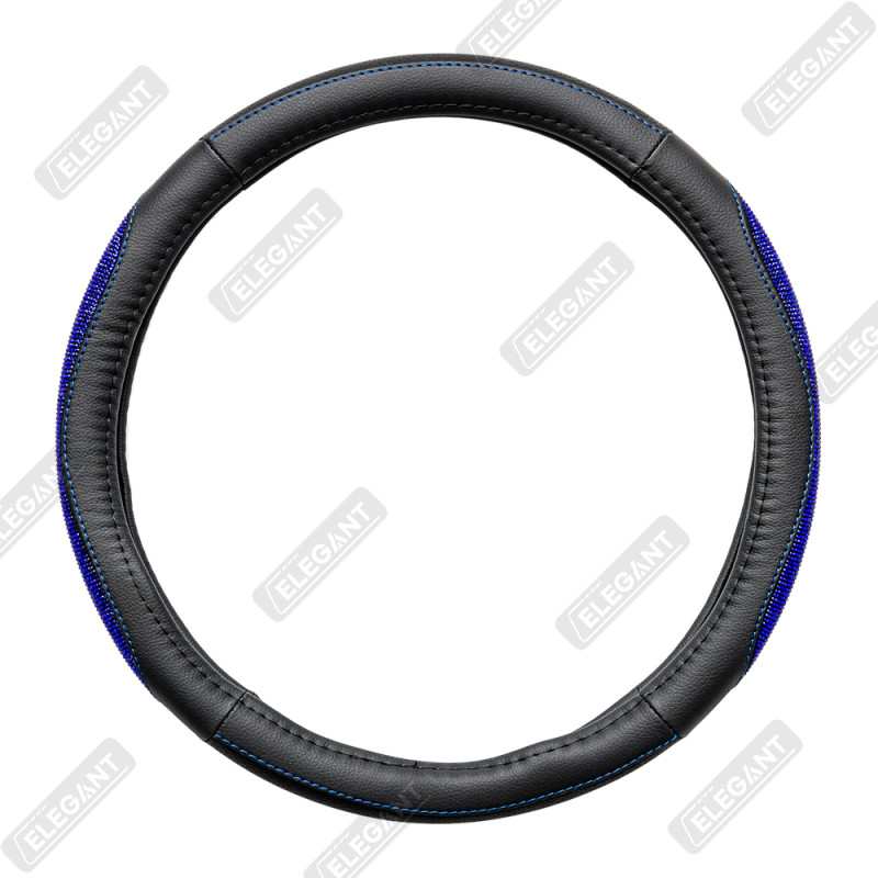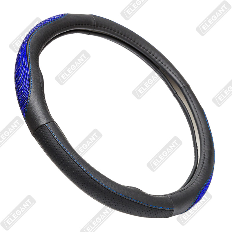 Чохол на кермо шкіра "М" (37-38см) чорний Elegant 115171 вставка з синім камінням