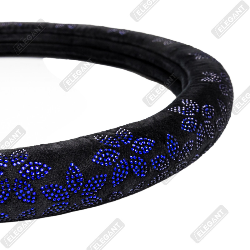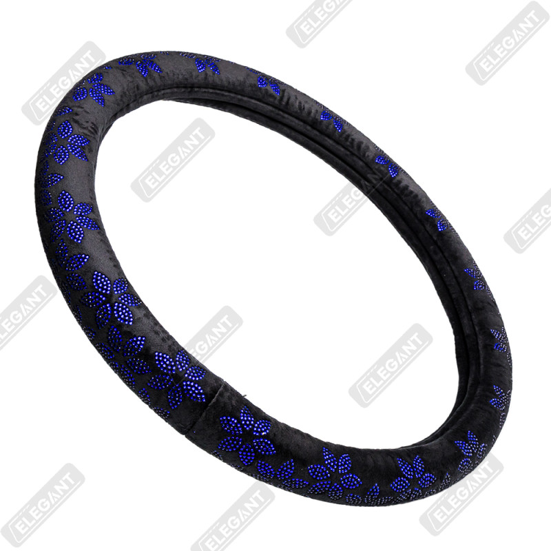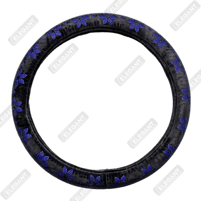 Чохол на кермо фланель "М" (37-38см) чорний Elegant 115221 квіти з синім камінням
