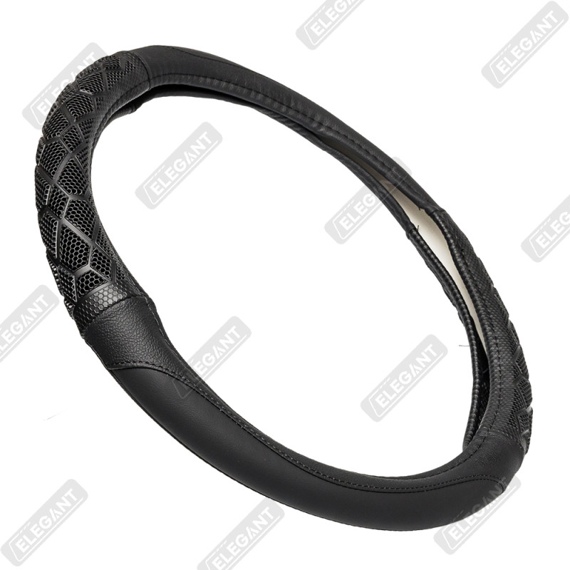 Чохол на кермо шкіра "XL" (42см) чорний Elegant 115033 перфорація/вставка ромб