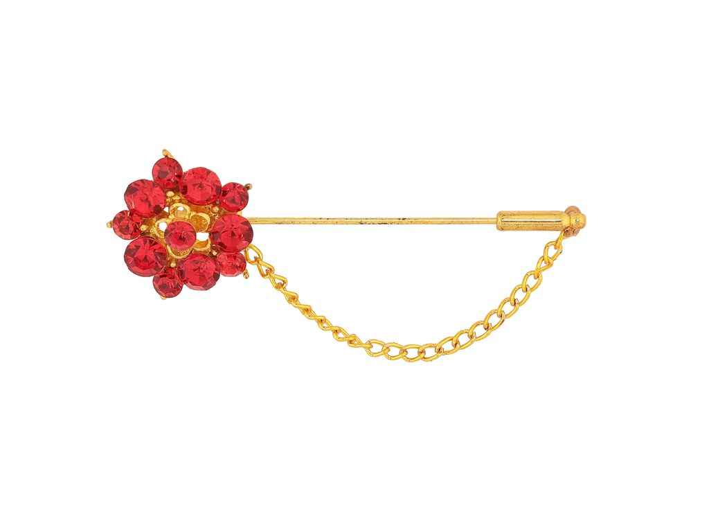 Брошка Квітка з червоними стразами та ланцюжком арт.307872 ТМ XUPING