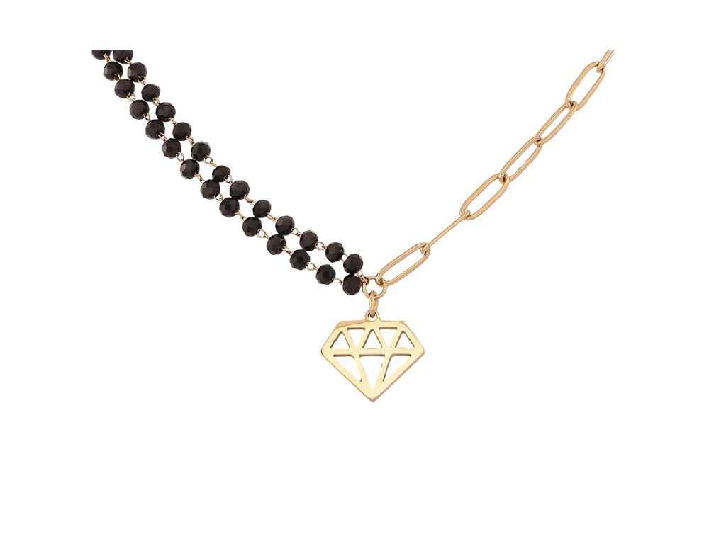 Кольє ТТМ Stainless Steel 14К Чорні намистини з ланцюжком, підвіска кристал 45-49см*4-6мм арт.308130 ТМ XUPING