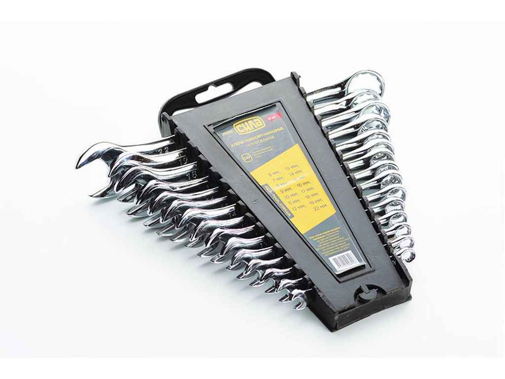 Набір ключів 15 Cr-V ріжково-накидних полірованих (6-19, 22мм) ТМ СИЛА