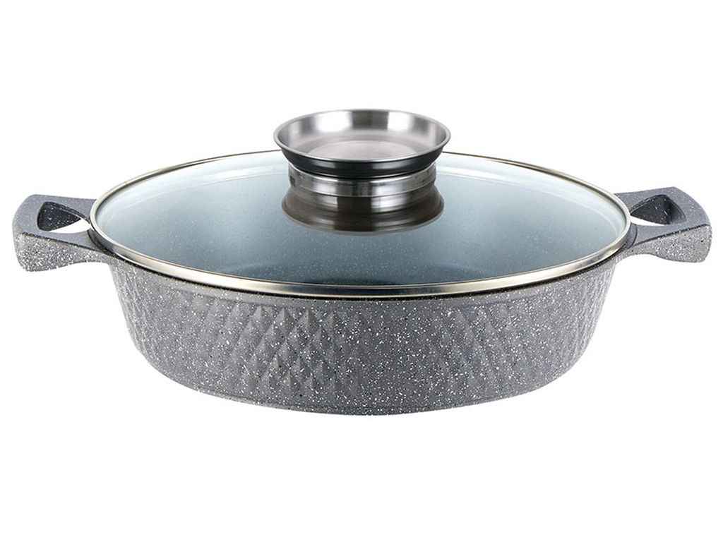 Каструля 3,5л кругла мілка алюм. з скл.кр. індукц. Сіра YLS8028-G ТМ ZAUBERG