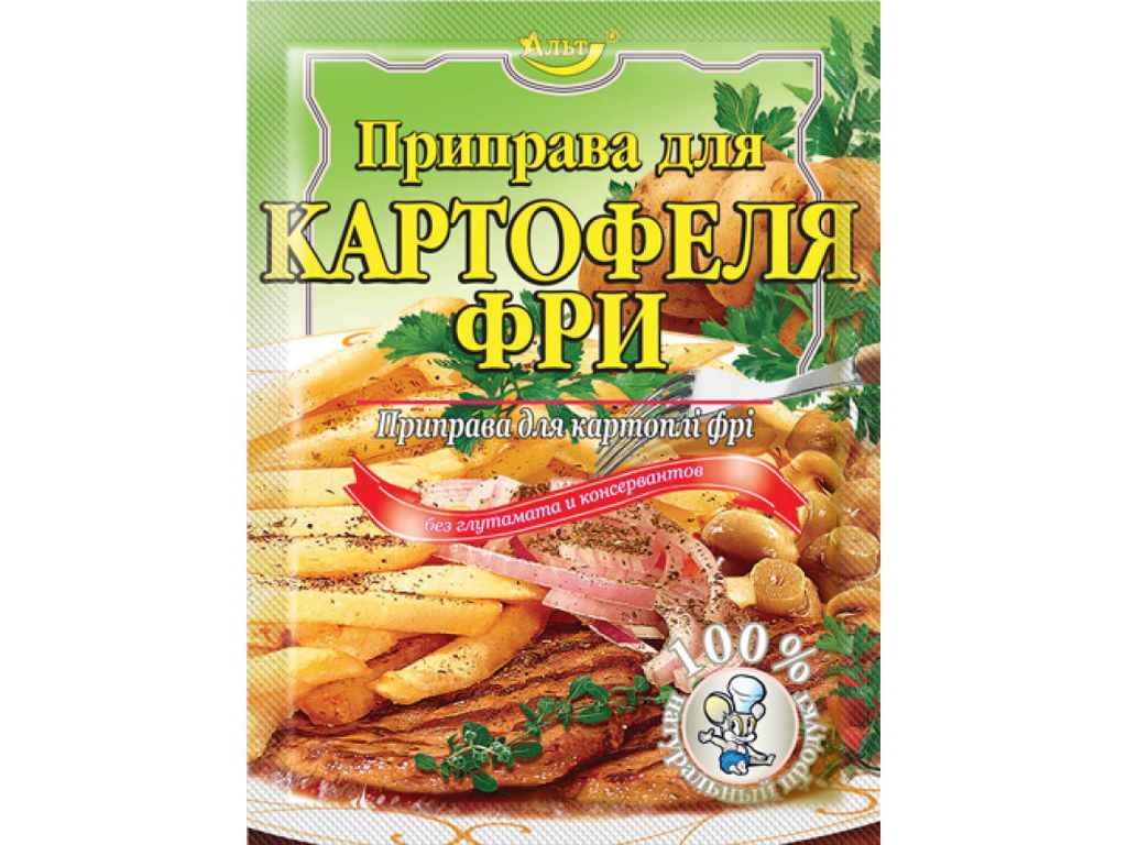 Суміш пряно-ароматична. Оригінальна суміш спецій, прянощів та сушених овочів, яка розроблена на основі традиційних рецептів. Приправа є невідємним компонентом у приготуванні картоплі фрі, а також страв із смаженої та печеної картоплі. Додається до смаку.