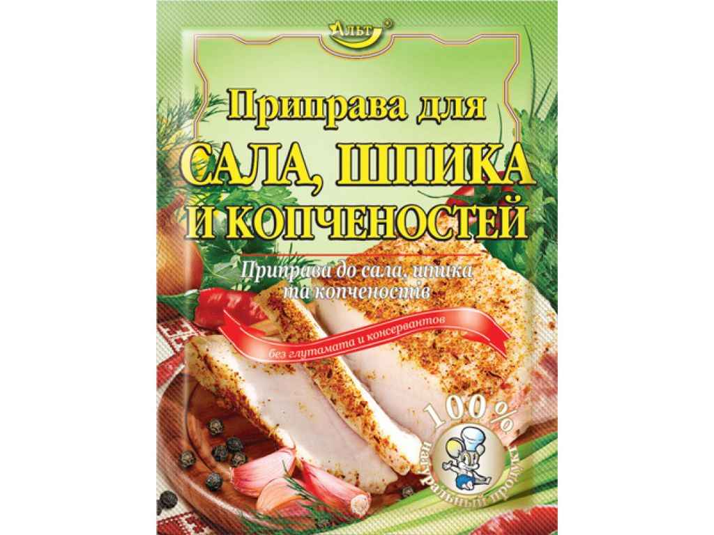 Суміш пряно-ароматична. Оригінальна суміш спецій, прянощів та сушених овочів, яка розроблена на основі традиційних рецептів. Сало, шпик та копченості вийдуть набагато смачнішими та ароматнішими, якщо Ви приготуєте їх зі спеціями та пряними травами. Використовуйте нашу приправу, склад якої спеціально підібраний, і Ваші страви вийдуть особливо смачними. При засолюванні та запіканні – сало натирається приправою та маринується, а при приготуванні холодних закусок – нарізані скибочки копченостей, шпику або сала посипаються приправою.