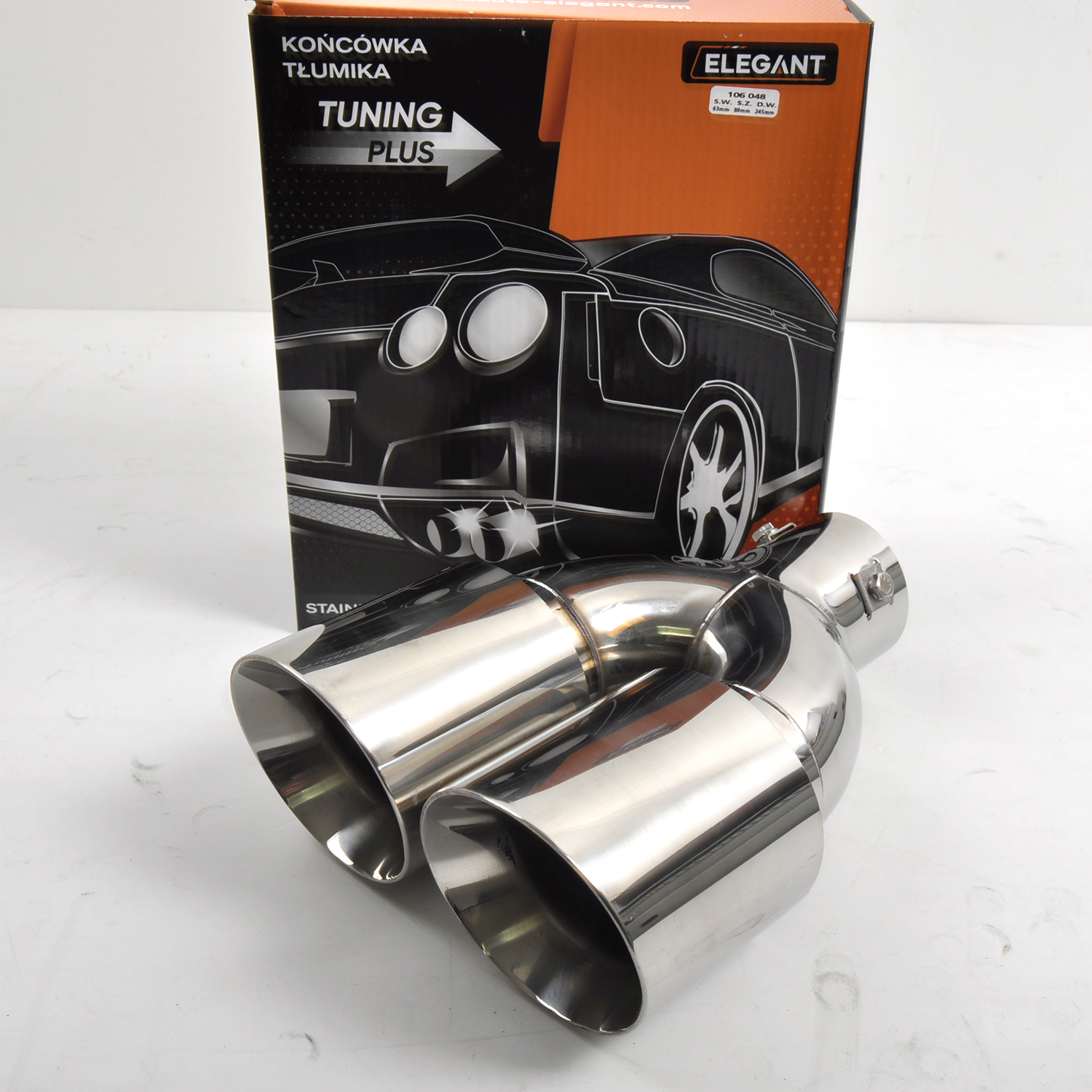 ¶Насадка на глушник Elegant— один з вузлів вихлопної системи, який окрім декоративної функції, дозволяє краще видаляти вихлопні гази з двигуна автомобіля, а також захищає вихлопну систему від механічного пошкодження.