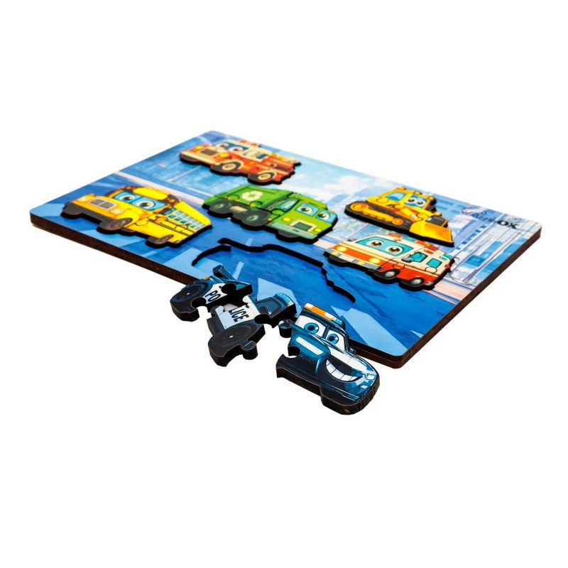 Деревянный пазл-вкладыш "Умный мир: Городской транспорт" Puz-88747 А5, 18 элементов
