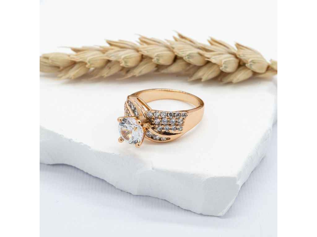 Каблучка Розкіш 57338 9мм білі фіаніти позолота 18К р.18 ТМ XUPING