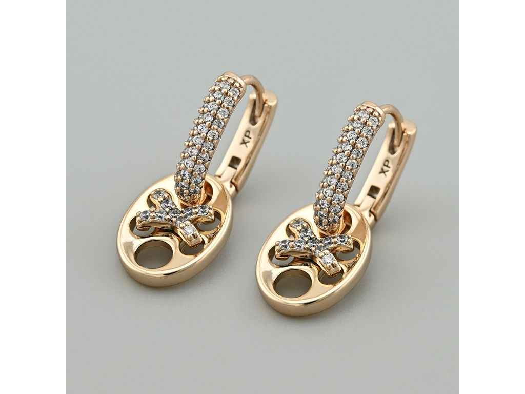 Сережки підвіски Кариби 55836 24*10мм білі фіаніти 4,5г позолота 18К ТМ XUPING