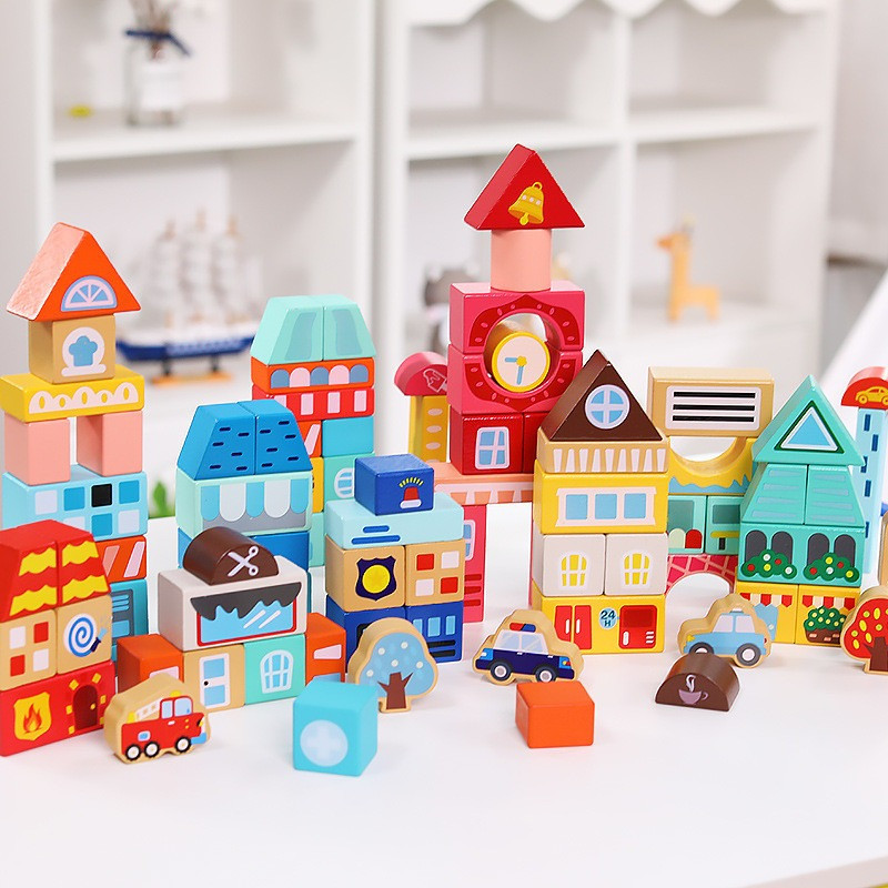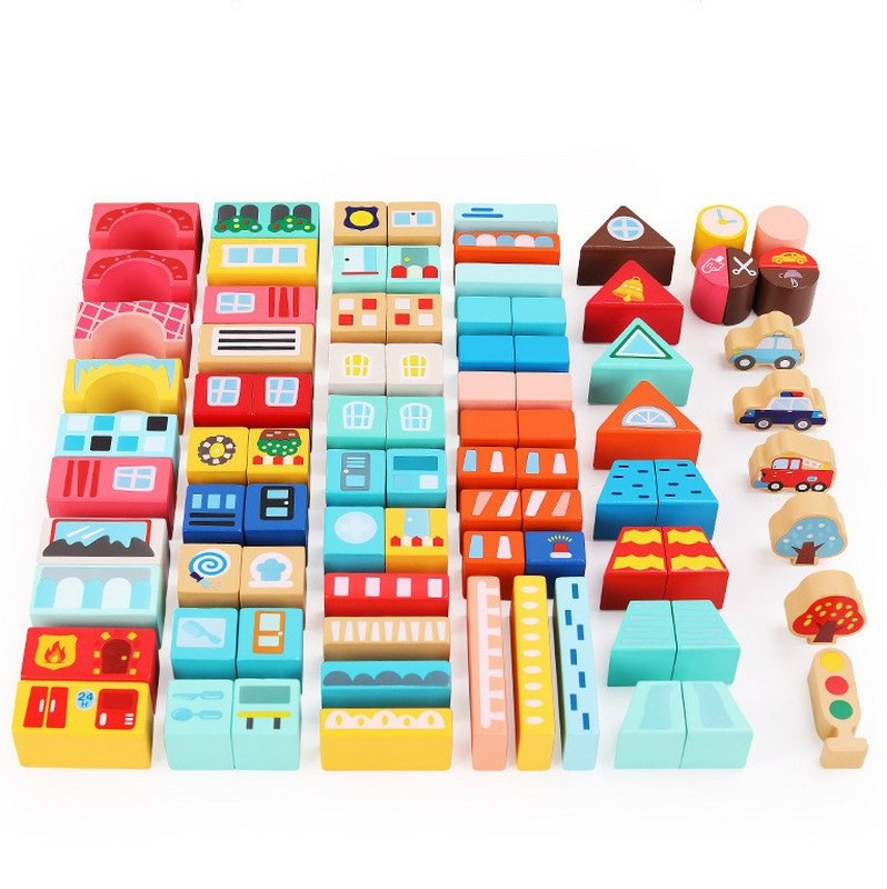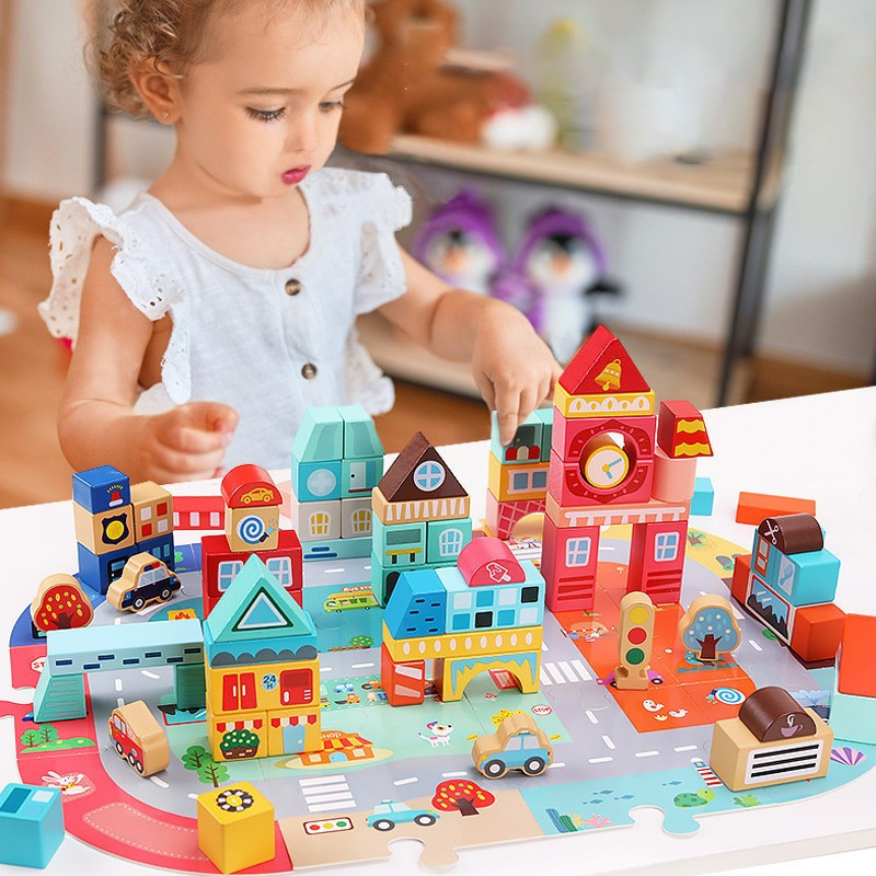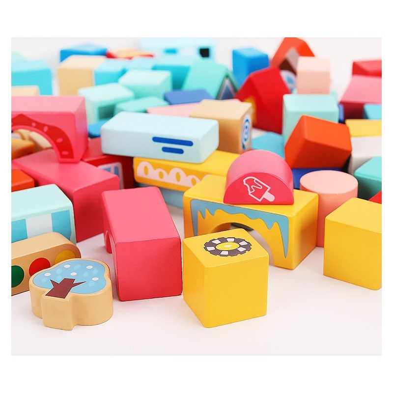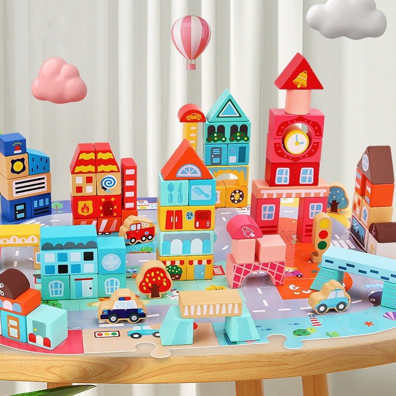 Деревянный конструктор "Город" C 75545, 12 пазлов, 88 деталей