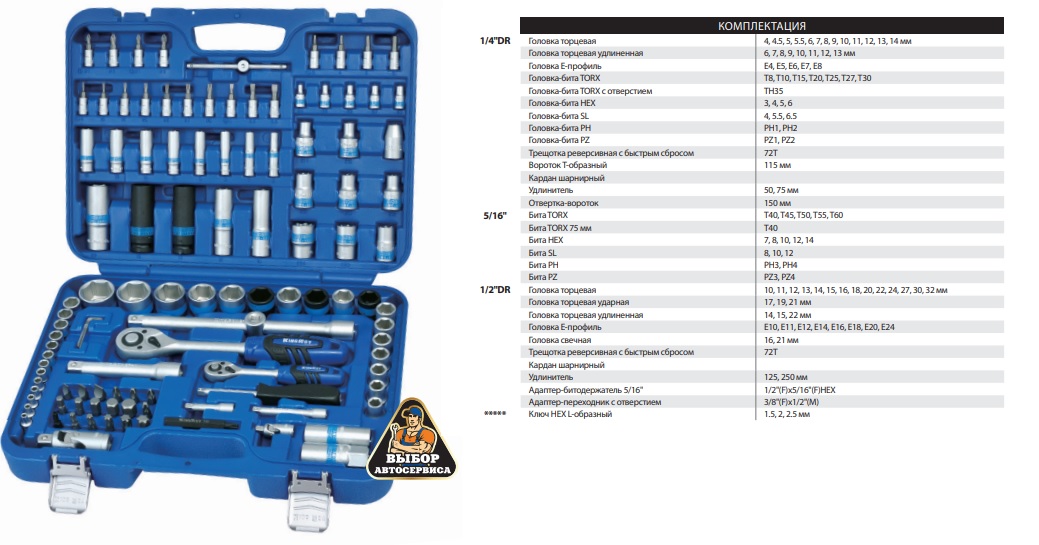 1/2":Головки торцевые: 10; 11; 12; 13; 14; 15; 16; 17; 18; 19; 20; 21; 22; 24;27; 30; 32 мм;