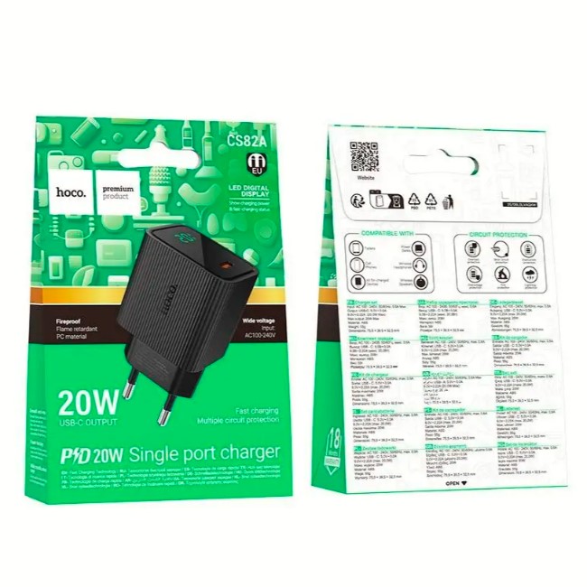 Адаптер 220v (1Type-C) HOCO CS82A PD20W+Type-C -Lighting Чорний