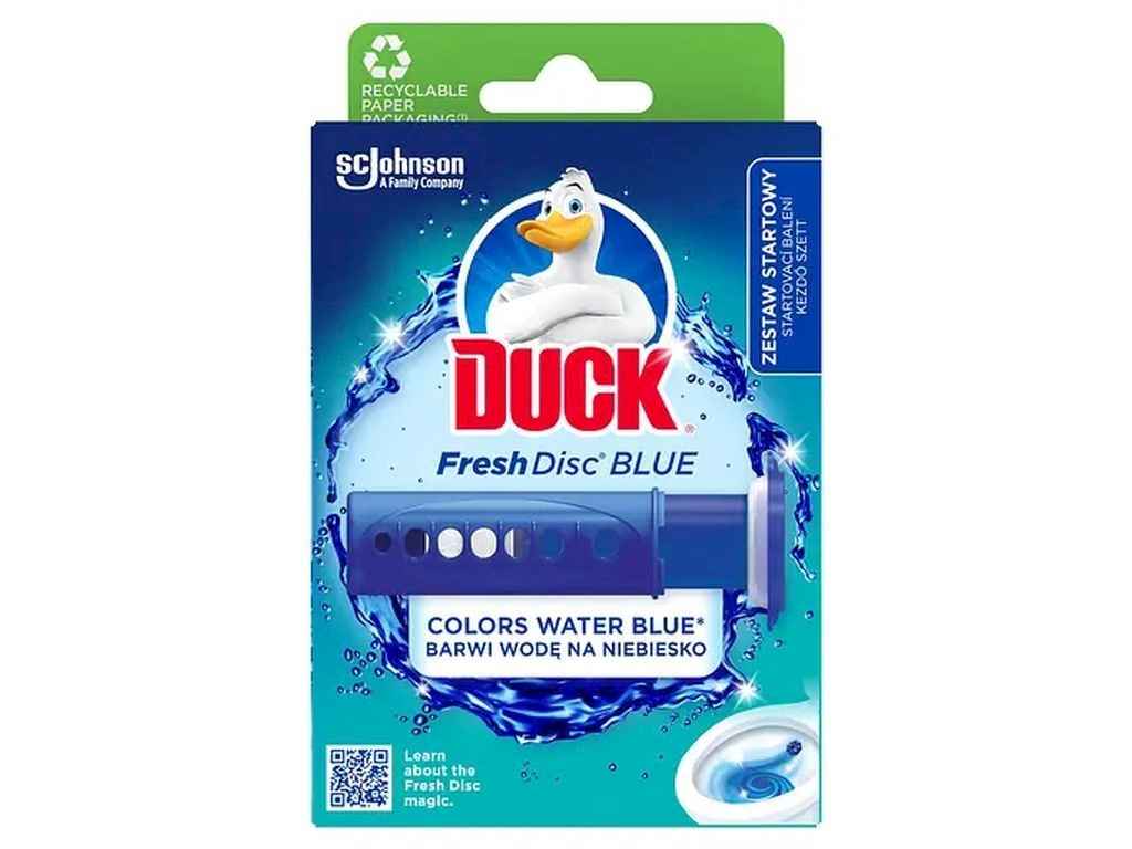 Duck Диски чистоти для унітазу фарбуючі Блакить – це інноваційний засіб для підтримання гігієни та свіжості в туалеті. Кожен диск запобігає утворенню вапняного нальоту, очищає унітаз та фарбує воду в блакитний колір при кожному змиванні. Засіб забезпечує тривалу свіжість і чистоту, легко наноситься без прямого контакту. Упаковка містить 6 дисків, загальний обєм засобу становить 36 мл.