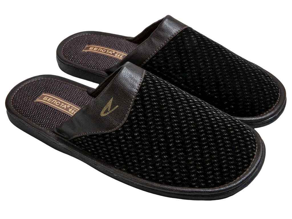 Чоловічі капці від виробника БЕЛСТА з велюру, підходять для носіння в прохолодну пору року. Устілка зроблена з текстилю. Модель легка та зручна в носінні, не маломірить
