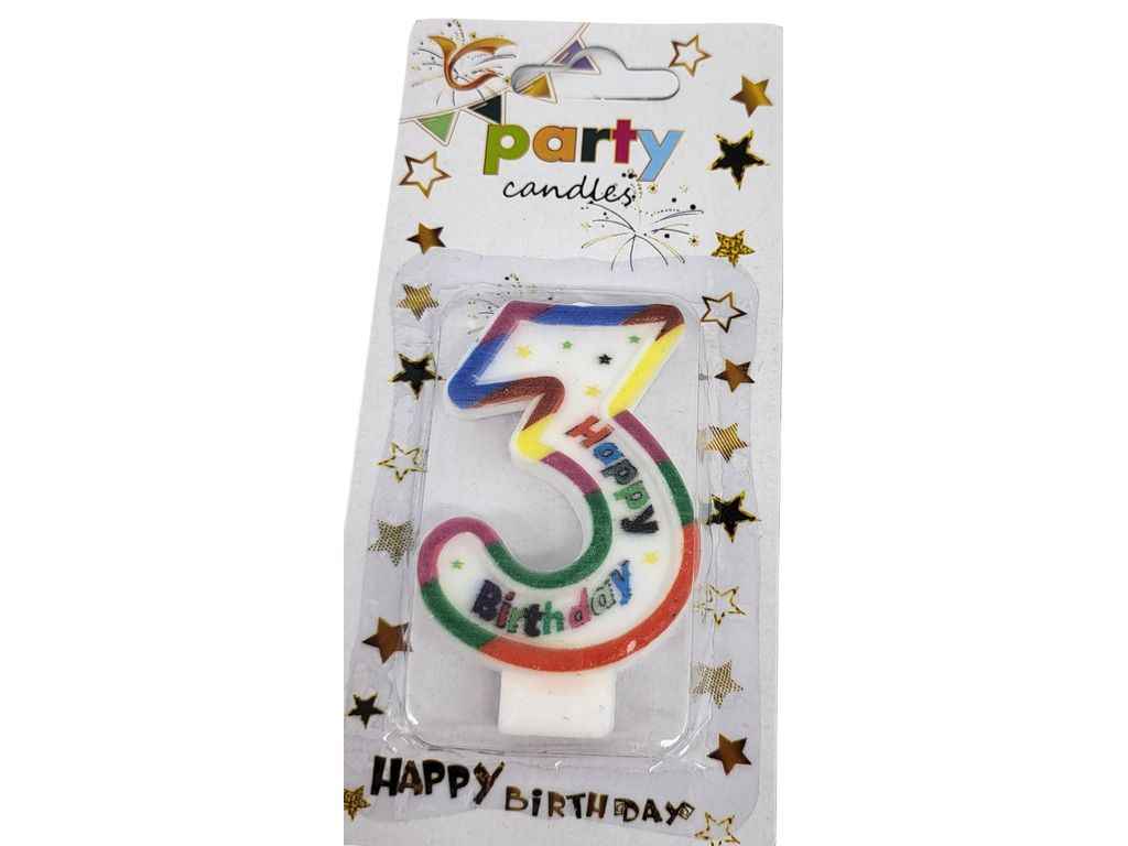 Свічка-цифра 3 Happy Birthday зірочки арт.084 ТМ PRC