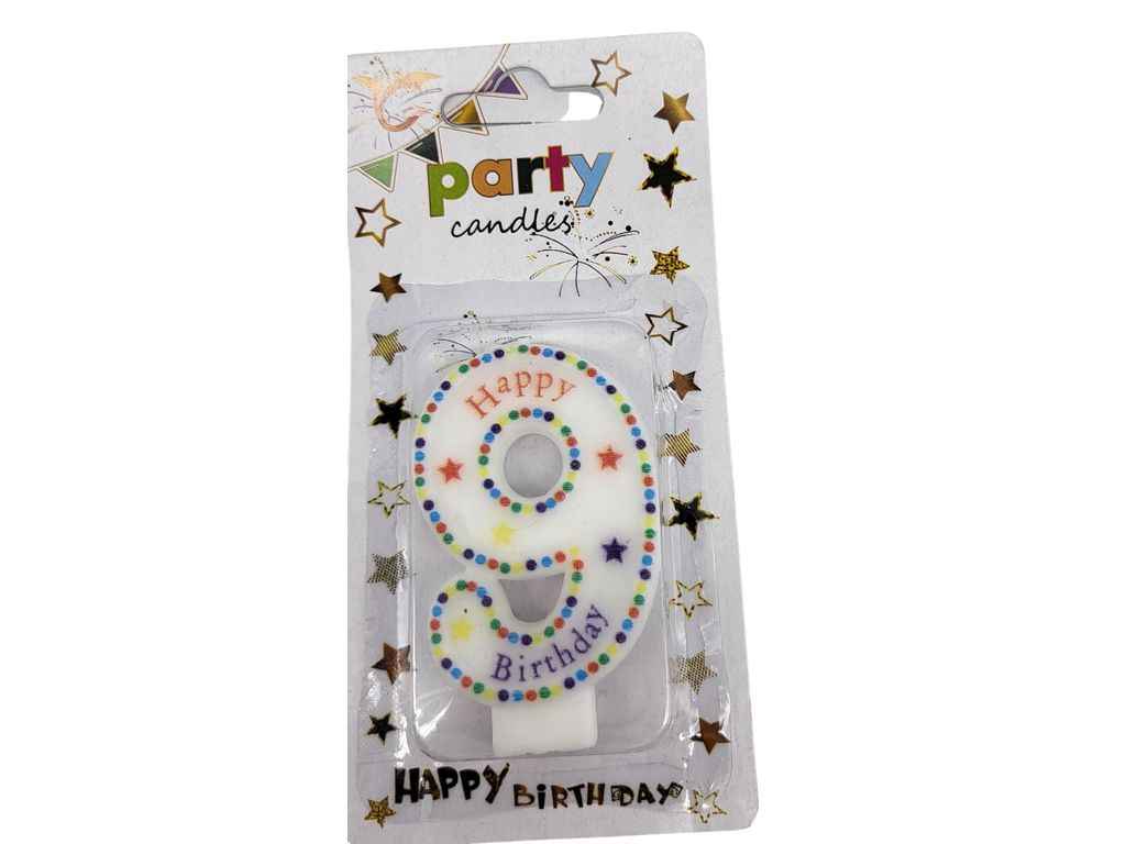 Свічка-цифра 9 Happy Birthday крапочки арт.068 ТМ PRC