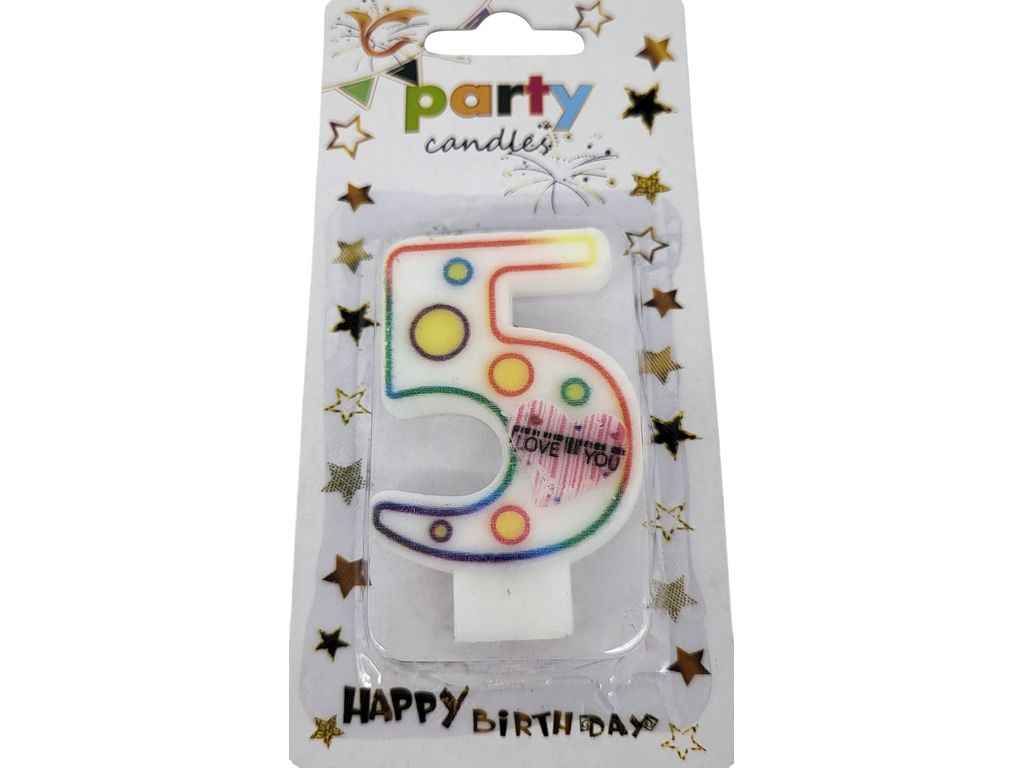 Свічка-цифра 5 Кольорові кружечки арт.091/092 ТМ PRC