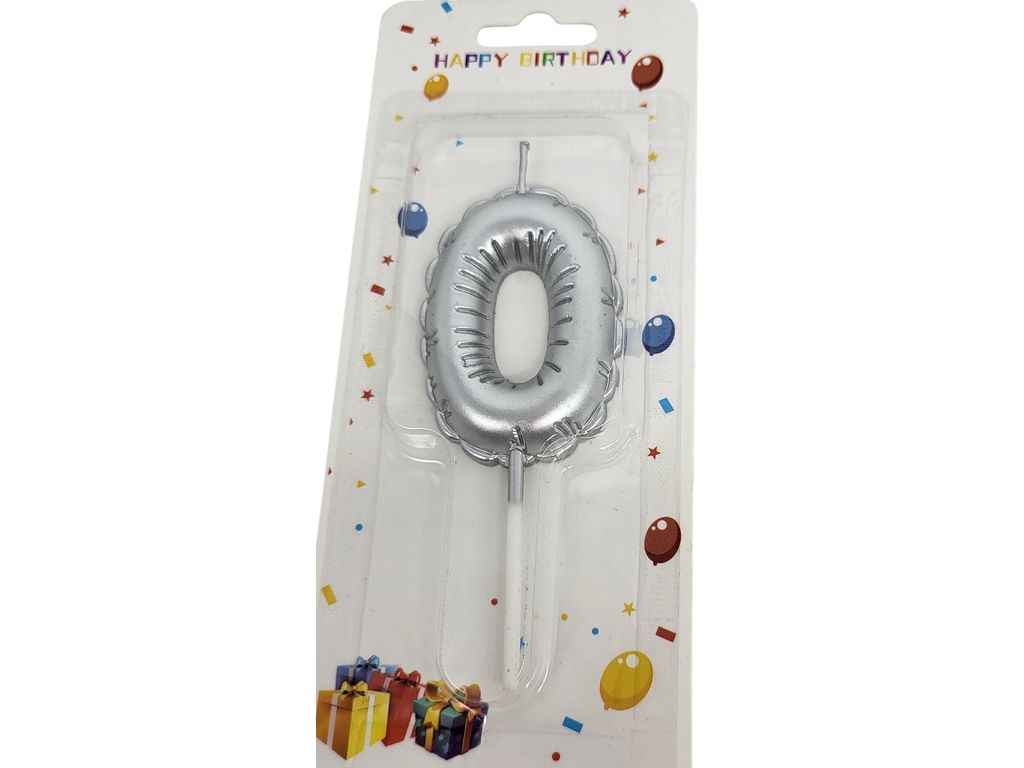 Свічка-цифра 0 срібло Округла арт.086 ТМ PRC