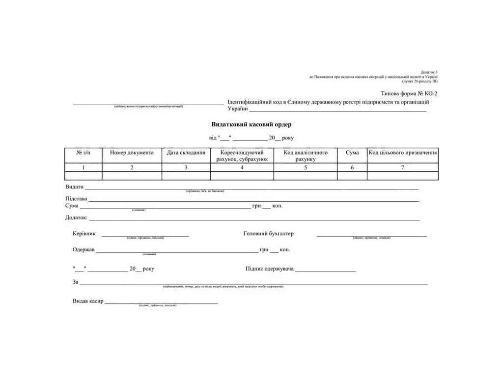 | Вид | Прибутковий касовий ордер |
