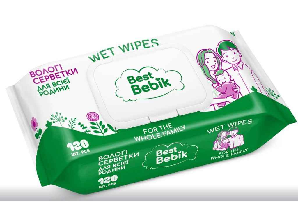 Вологі серветки 120шт Для всієї родини (клапан) ТМ BEST BEBIK