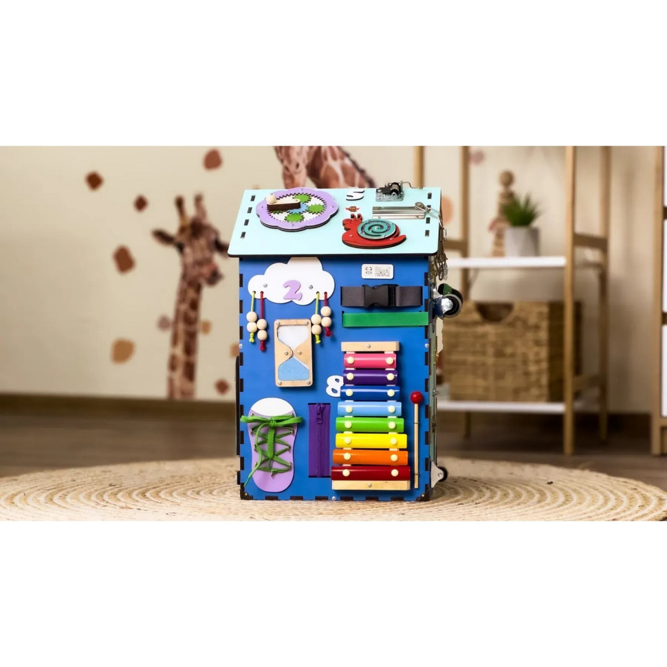 Бизидом - это уникальная развивающая игрушка для малышей от 6 месяцев до 4 лет, созданная по методике Монтессори. Он помогает ребёнку познавать мир через прикосновения, движение и самостоятельное исследование - в форме игры, которая надолго увлекает.Во время взаимодействия с элементами домика активно развивается мелкая моторика, а вместе с ней - память, внимание, мышление, координация движений, воображение и речевые способности. Ведь на пальцах и ладонях расположены нервные окончания, напрямую связанные с центрами головного мозга.Бизидомик не просто развлекает - он обучает важным жизненным навыкам в безопасной среде.Материалы: дерево, металл, пластик.Размер: 30х30х55 см.Домик имеет доступ внутрь - дверцы можно открывать разными способами: защелка, ручки, крючок. Это тренирует логику, последовательность действий и самостоятельность.Развивающие элементы:Ксилофон - развивает слуховое восприятие, ритм и способствует более быстрому развитию речи.Лабиринт - тренирует внимание, концентрацию и навыки решения задач.Часы - помогают изучать цифры и делать первые шаги в ориентировании во времени.Розетка и выключатель - безопасное знакомство с бытовыми предметами без риска.Сортер - развивает логическое мышление, знакомит с цветами и геометрическими фигурами.Также оснащен разными другими приборами и элементами, с которыми малыш может взаимодействовать.Бизидомик станет любимым пространством для игры, обучения и открытий - и отличным подарком, который действительно приносит пользу каждый день.