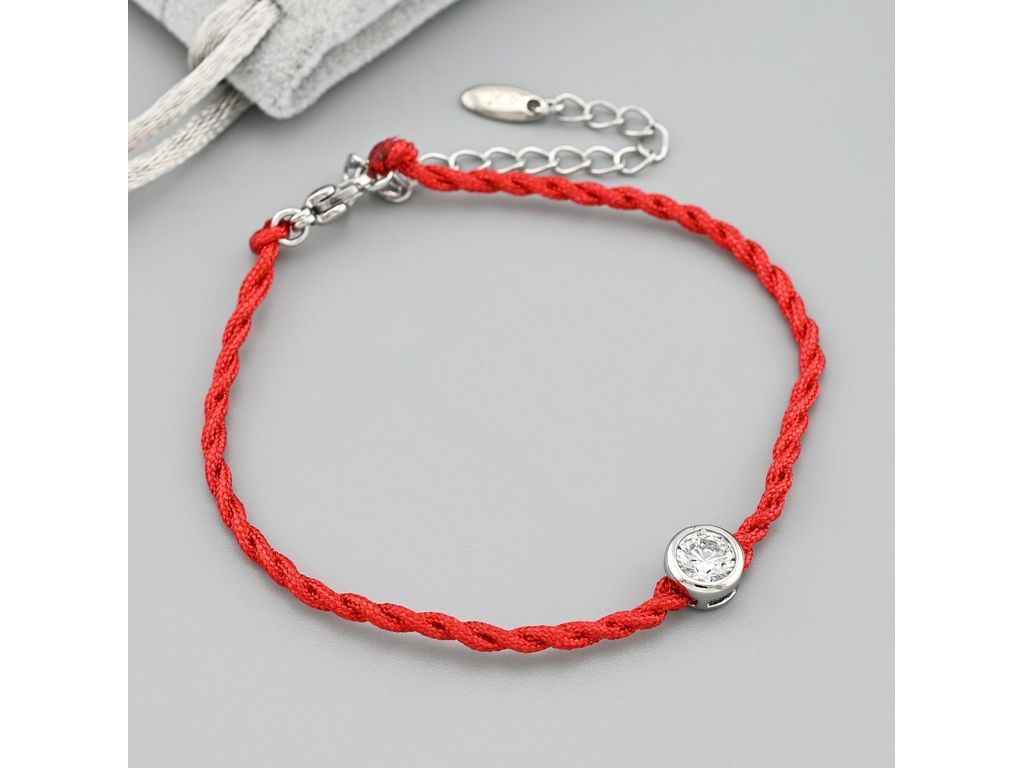 Браслет з червоною ниткою 30535 2мм білі фіаніти позолота Біле Золото р.16 ТМ XUPING