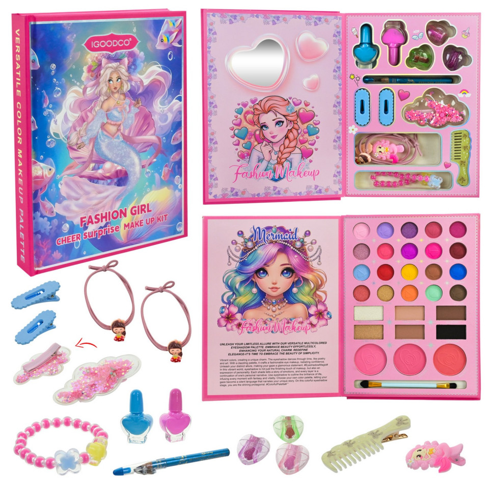 Очаровательная косметическая книжка в стиле русалочки - настоящий мир красоты и фантазии, где каждая девочка почувствует себя маленькой стилисткой. Игра превращается в творческую студию, где можно смело экспериментировать с цветами, создавать нежные или яркие образы и дополнять их милыми украшениями.