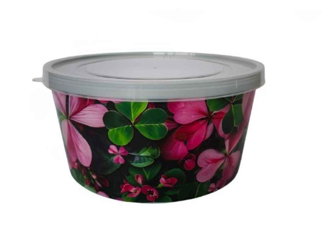 Ємність 1,6л кругла з декором клевер ТМ ПОЛІМЕРАГРО