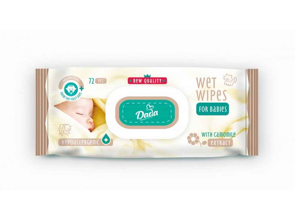 Дитячі вологі серветки з екстрактом ромашки 72 шт. з клапаном ТМ DADA