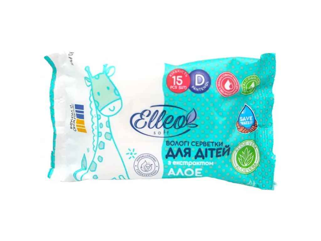 Вологі серветки 15шт Дитячі Алое ТМ ELLEO