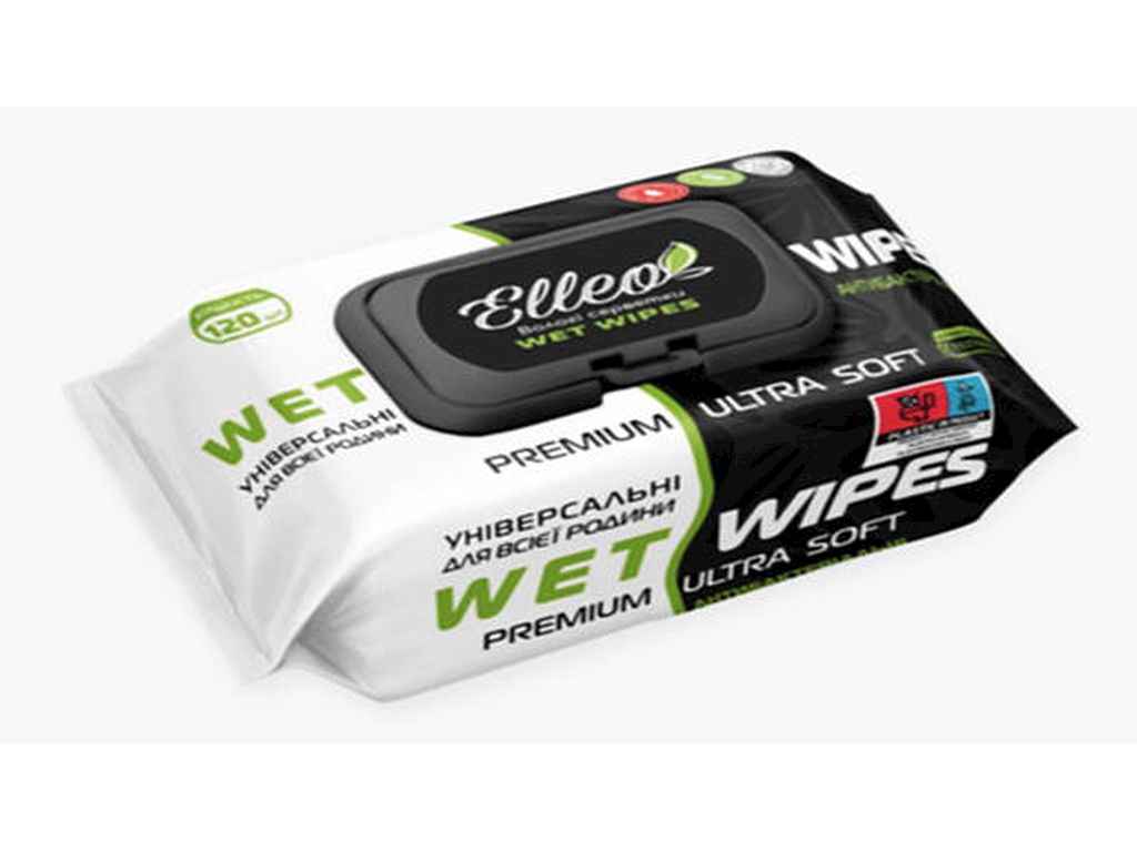 Вологі серветки 120шт Універсальні Антибактеріальні (клапан) ТМ ELLEO