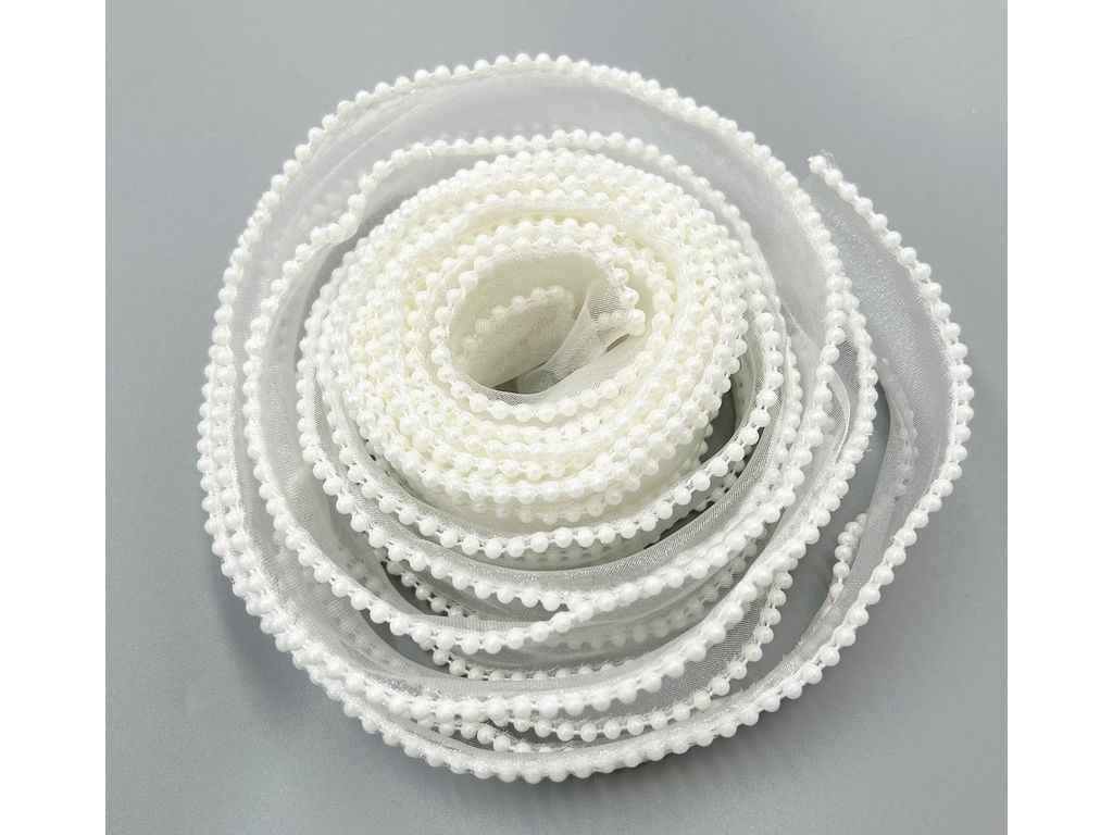 Стрічка з органзи 4см * 3,5м білий з перлинами ТМ КИТАЙ