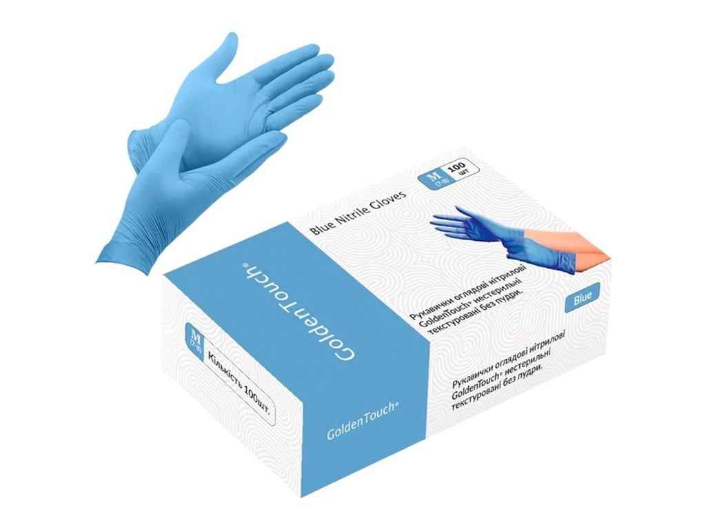 Рукавички нітрилові оглядові 50пар M Блакитні (нестер/текстур/без пудри) ТМ GOLDENTOUCH