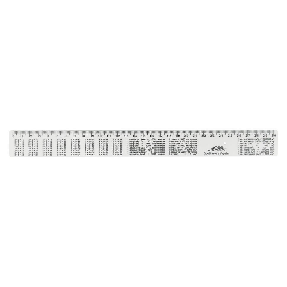 Линейка с табличкой умножения AS-0612, К-9052 белый, пластиковая, 30 см