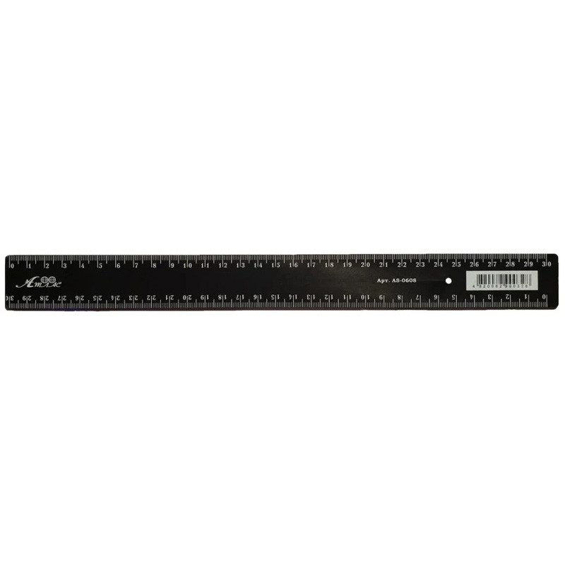 Классическая линейка AS-0608, К-9095 цвет черный, пластиковая, 30 см