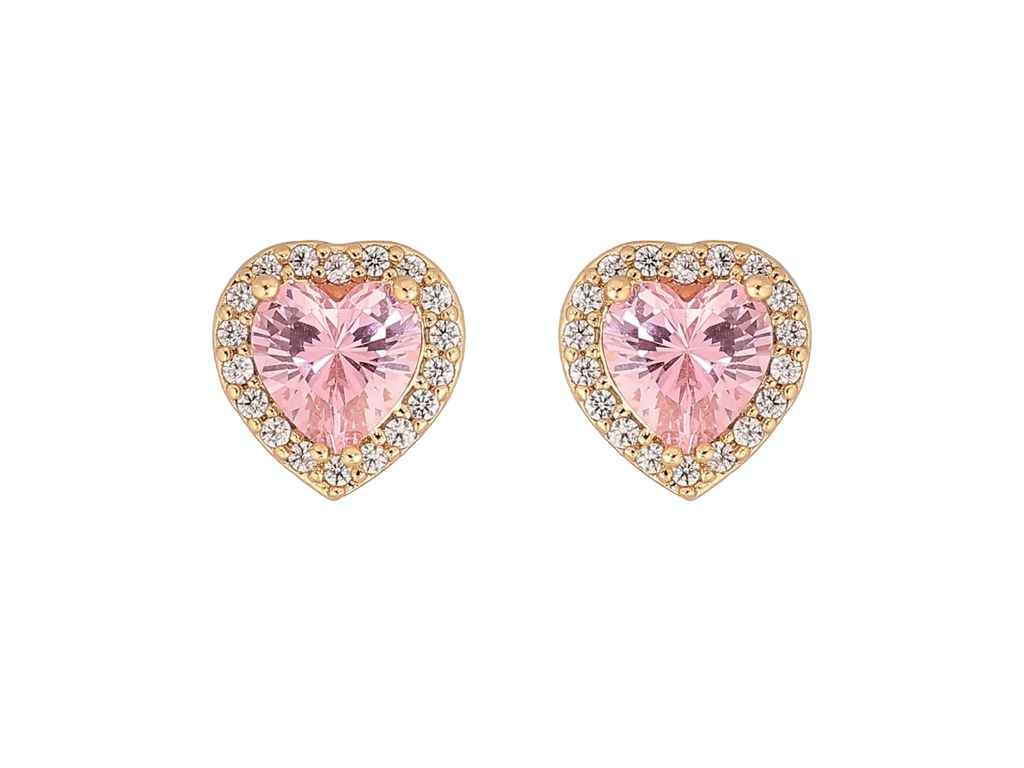 Сережки пусети Позолота 14K Рожеві кристальні серця (311576) ТМ XUPING