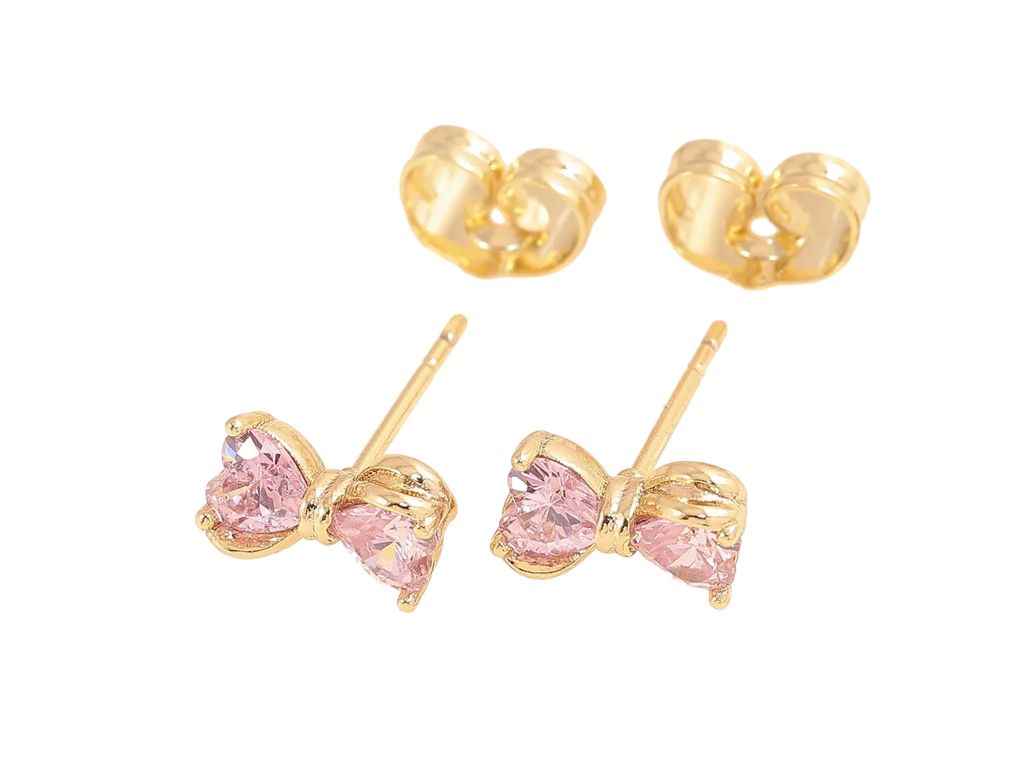 Сережки пусети Позолота 14K Рожеві кришталеві банти (311582) ТМ XUPING