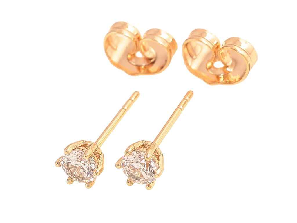 Сережки пусети Позолота 18К Кристали в 6- ти крапановій оправі ø 4мм (312115) ТМ XUPING