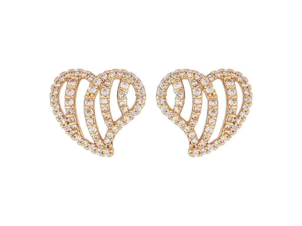 Сережки пусети Позолота 18К Сердечки з інкрустацією кристалами (312189) ТМ XUPING