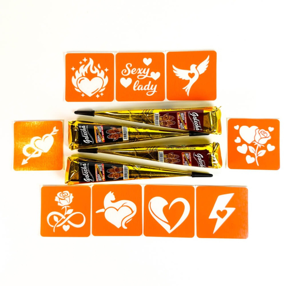 Набор хны с трафаретами для био-тату №9 henna-set-09, 9 трафаретов