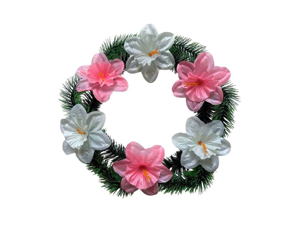 Вінок поминальний Петунія 40х40см шампань-рожевий неон ТМ Memori