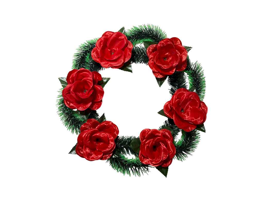Вінок поминальний Троянда з листочками 40х40см червоний ТМ Memori