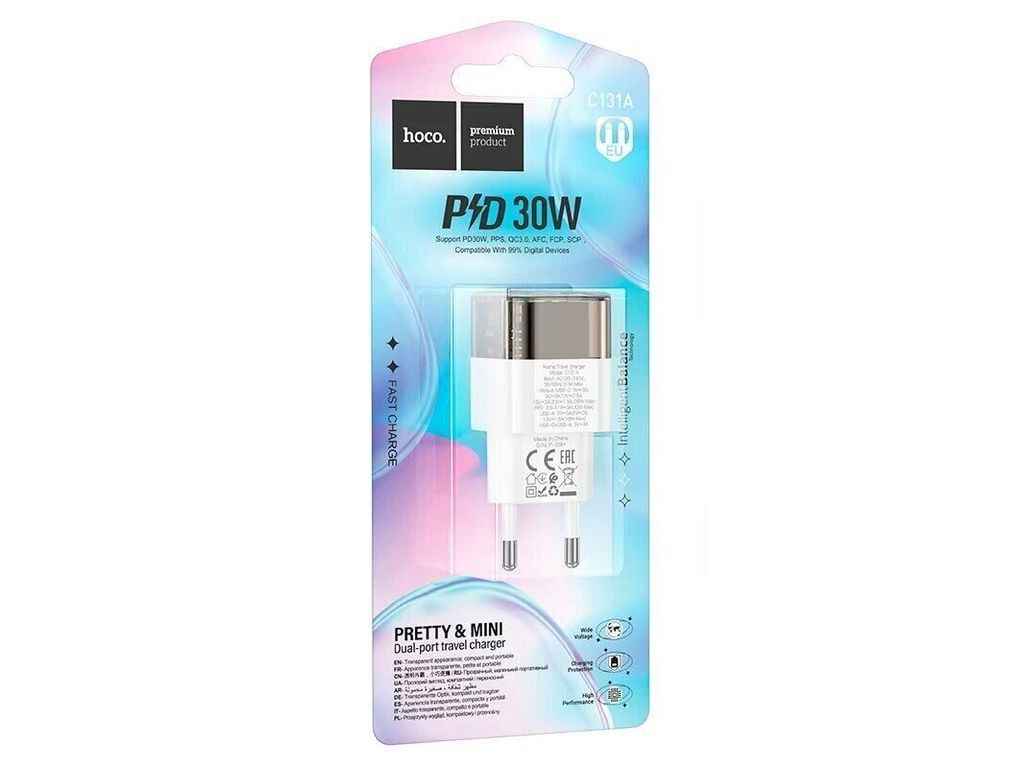 Мережевий зарядний пристрій USB C131A 3A/1USB/QC3.0/PD30W біло-чорний ТМ HOCO