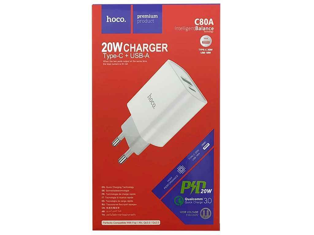 Мережевий зарядний пристрій USB C80A 1USB/18W/QC3.0/PD20W білий ТМ HOCO