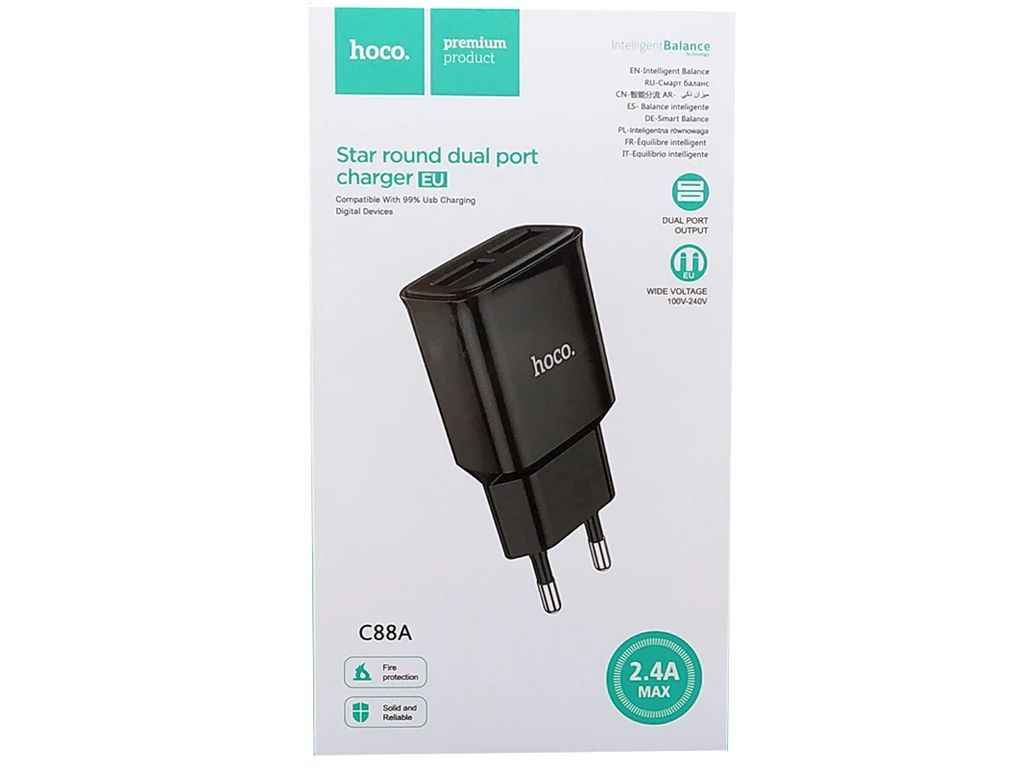 Мережевий зарядний пристрій USB C88A 2.4A/2USB чорний ТМ HOCO
