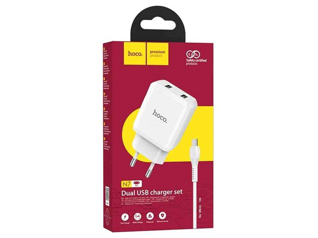 Мережевий зарядний пристрій microUSB N7 2.1A/2USB/10.5W білий ТМ HOCO