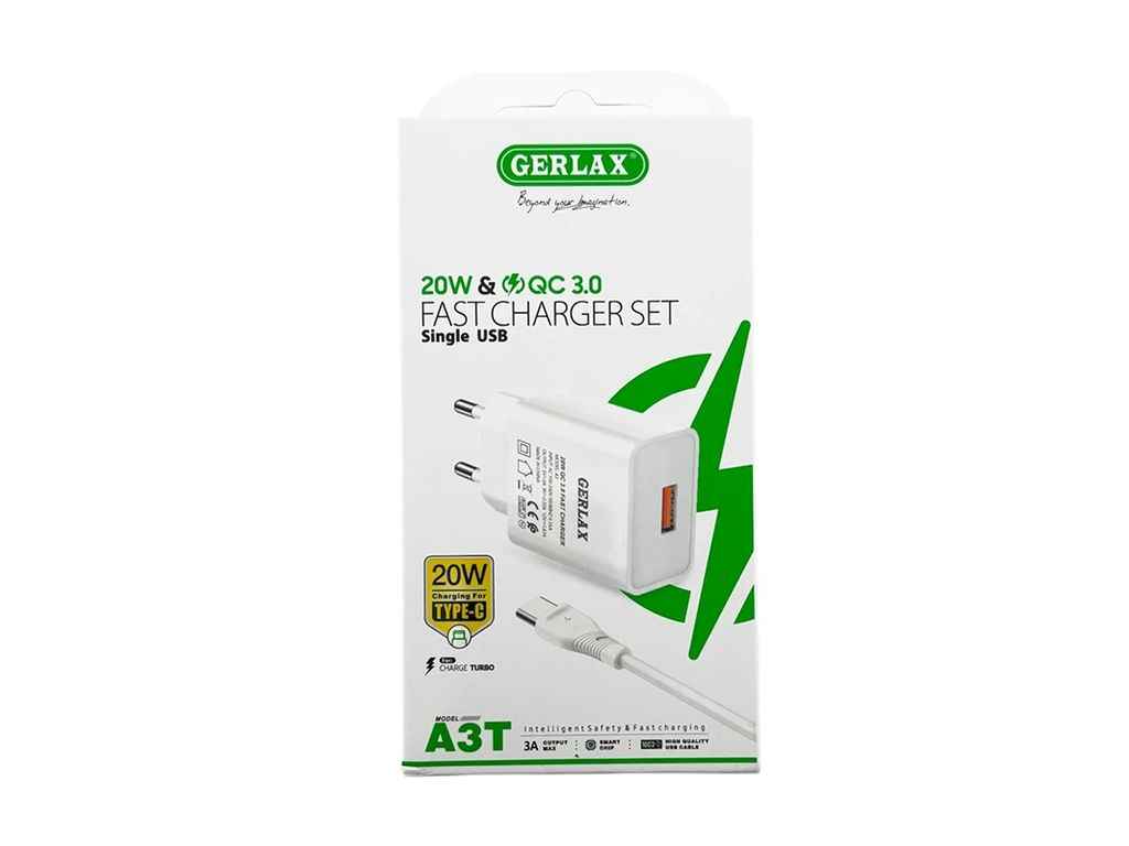 Мережевий зарядний пристрій Type-C A3T 3A/1USB/20W/QC3.0 білий 1м ТМ GERLAX