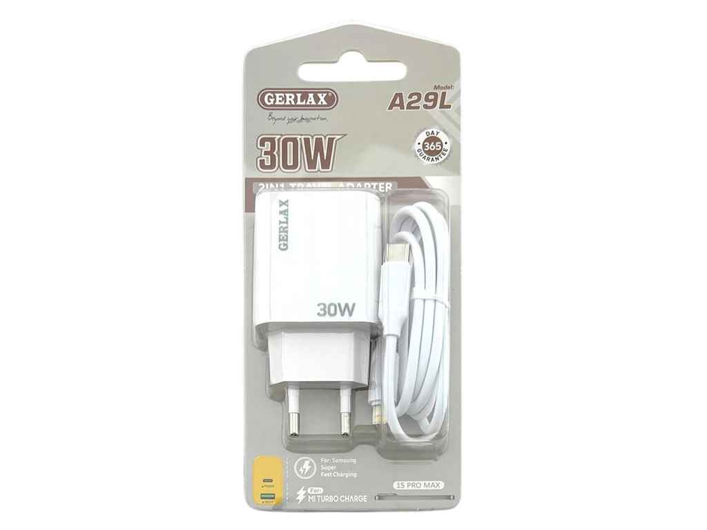 Мережевий зарядний пристрій Type-C to iPhone Lightning A29L 3A/QC3.0/30W білий ТМ GERLAX
