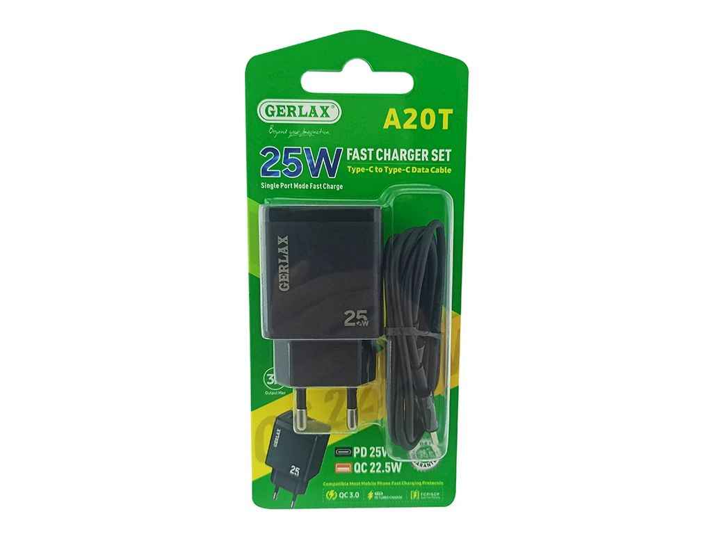 Мережевий зарядний пристрій Type-C A20T 1USB/PD25W чорний ТМ GERLAX